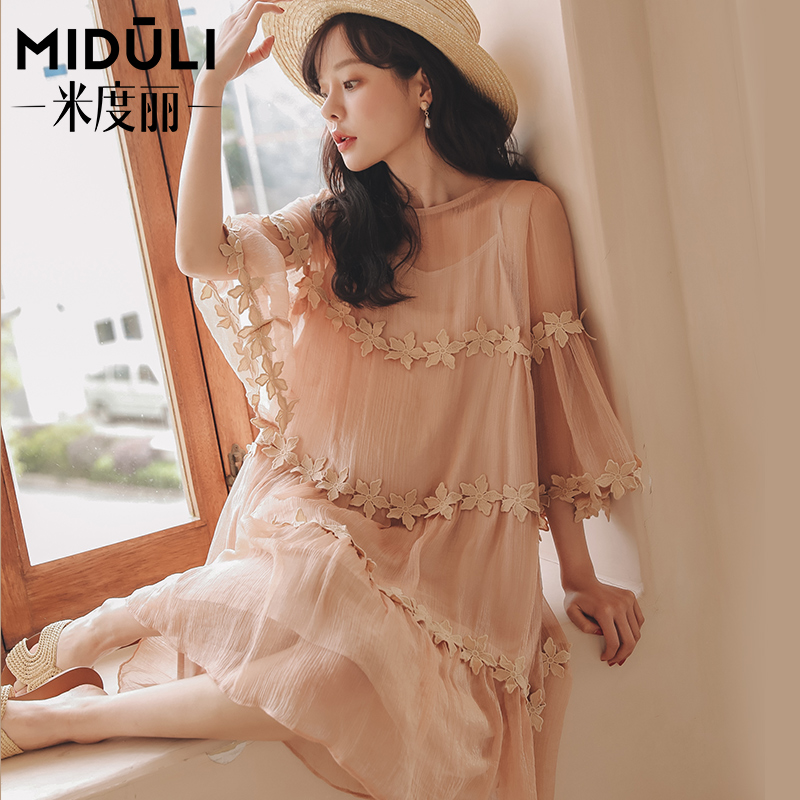 • 米度丽旗舰店孕妇连衣裙夏季a字裙网纱雪纺长裙夏天裙子潮洋气潮妈孕妇装夏装12/4